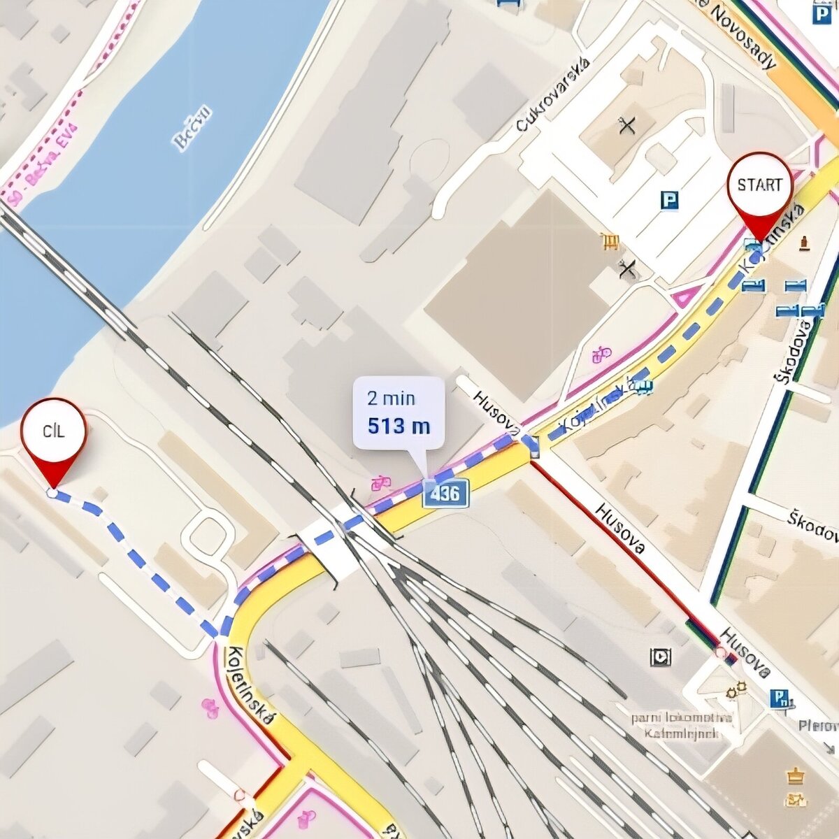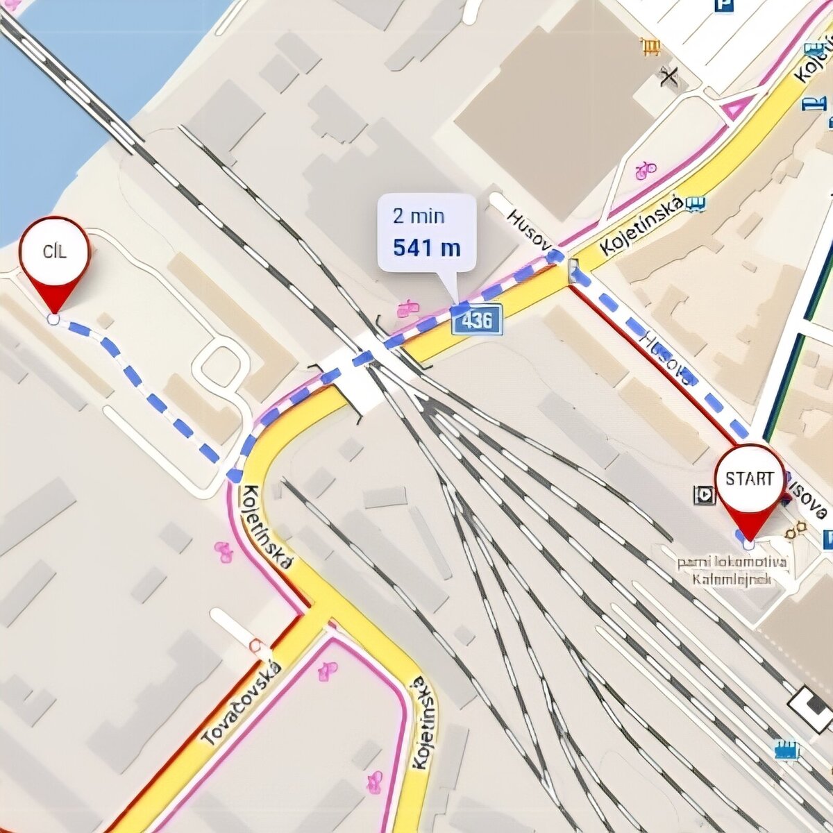 Při příjezdu do Přerova vlakovým spojem - (cca 550 m, 6 min. chůze).