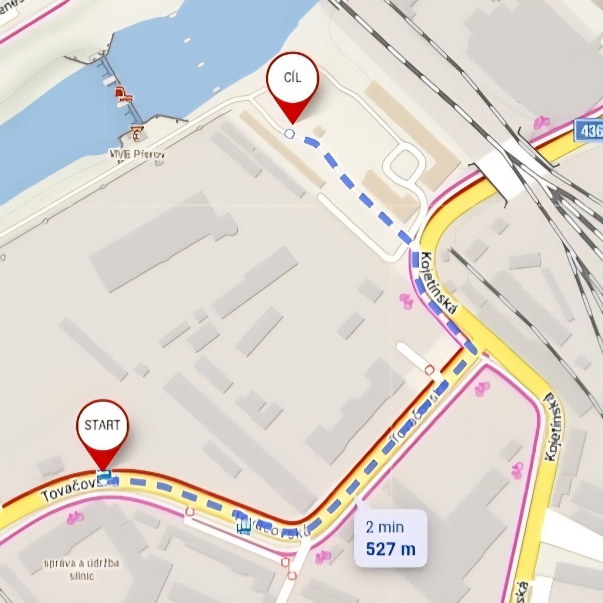 Při příjezdu od autobusové zastávky Tovačovská - (cca 520 m, 6 min. chůze)